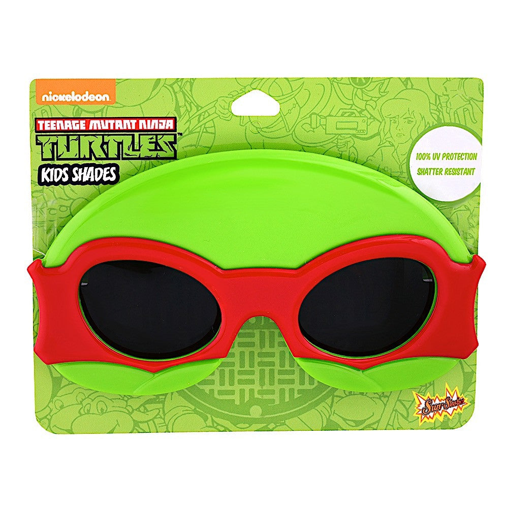 Team up with your turtle brothers and get ready to fight bad the Foot Clan in style with these Raphael Lil' Characters Sun-Staches. Grab your twin sais and this pair of entertaining eyewear. Be the bad boy of the TMNT crew with these stylish shades. With his red bandanna disguise, no one will know that you're a giant turtle. Complete with UV protective lenses and made for fun in the sun, these are the perfect accessory for keeping young ninja turtles in training. These aren't just sunglasses, they're Sun-Staches!