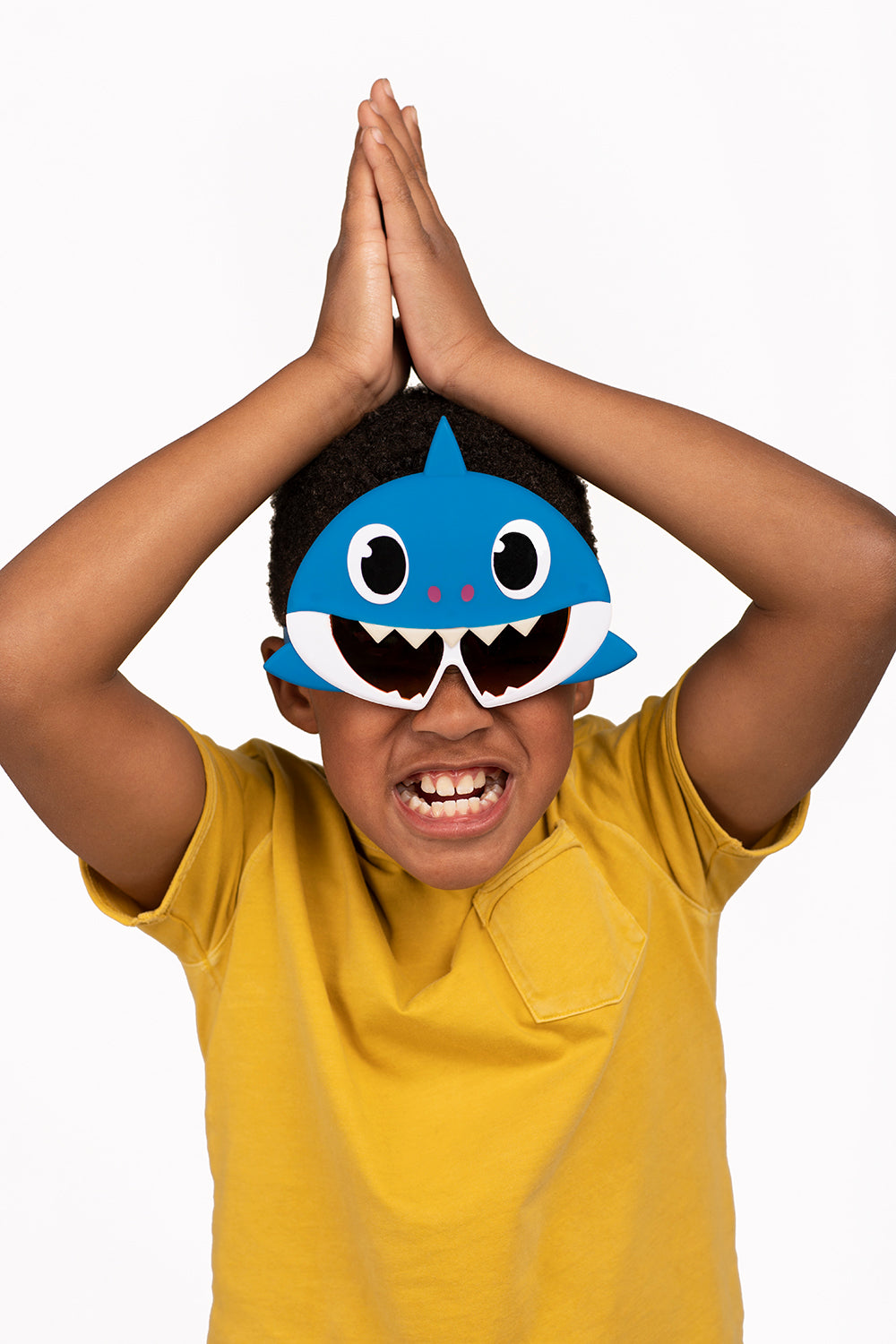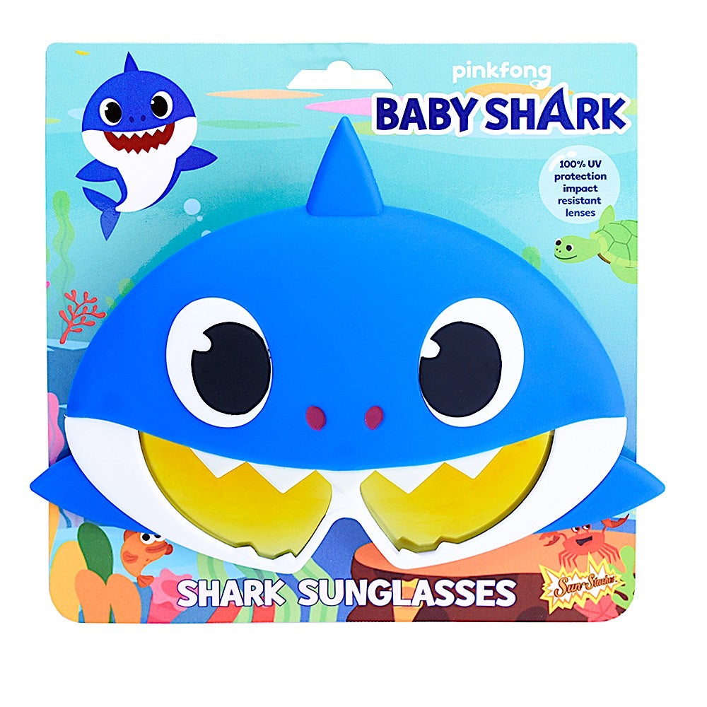 Get ready for a family swim with a pair of our Daddy Shark Sun-Staches. From the popular song that has everyone waving their fins, these stylish shades are the ultimate way to sing and swim in style! Featuring a fun blue Daddy Shark face and UV protective lenses so you can keep your eyes safe while having fun in the sun. Whether you're making waves at the pool party or hanging out with family at the beach, you're gonna look great with some entertaining eyewear. These aren't just sunglasses, they're Sun-Staches!