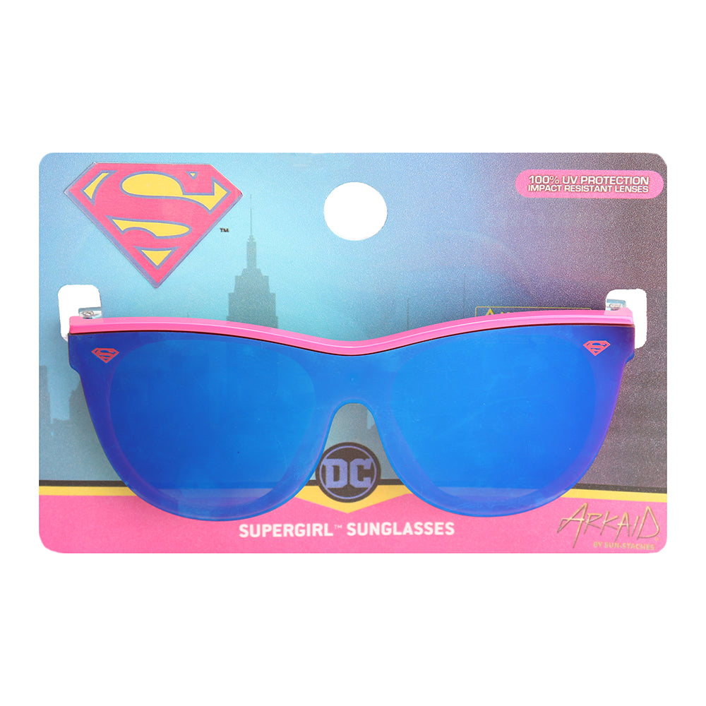 Save the planet in style in a pair of DC Supergirl Rimless Sunglasses by Arkaid. Become the Girl of Steel with a fashionable purple and pink frame with blue transparent arms adorned with stars. Complete with UV400 protective and impact resistant lenses these are the ultimate shades for any young superhero. Practice your planet-splitting right hook with the epic new eyewear. These aren't just sunglasses, they're Sun-Staches!