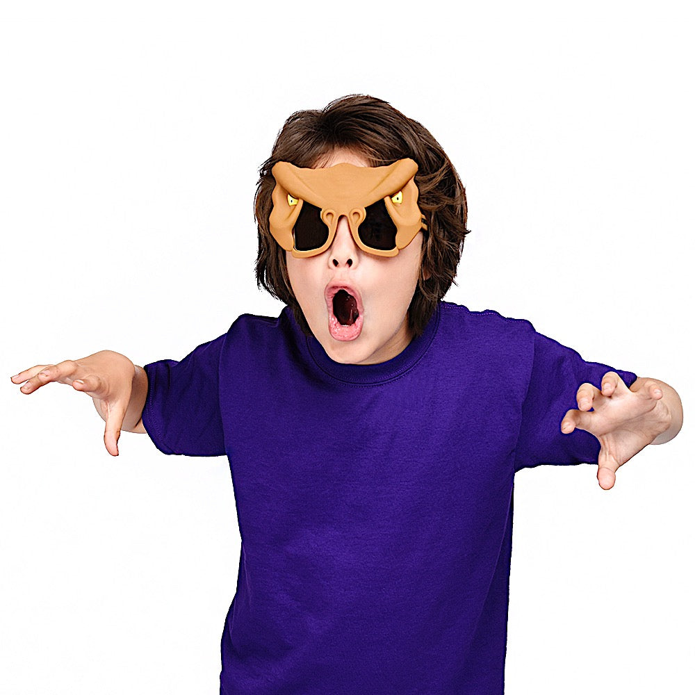 Everyone knows that the T-Rex is the biggest and baddest dino around. The ground will quake and knees will shake in these ferociously cool Jurassic World T-Rex Lil' Characters Sun-Staches. Featuring a fierce Tyrannosaurus Rex head and UV protective lenses for keeping your eyes safe roaming around the Jurassic Park. Perfect for young dinos and great for all occasions. These aren't just sunglasses, they're Sun-Staches!