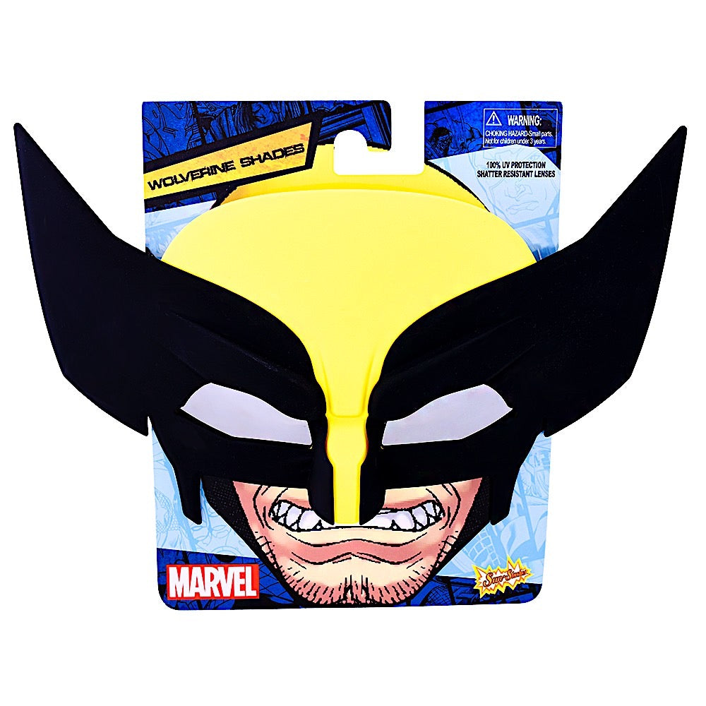 Mutate and evolve in the hero of the party with a pair of X-Men Wolverine Sun-Staches. Transform into the leader of the X-Men and save the day with these stylish shades. Featuring his yellow and black signature mask you'll be ready to tear up the party with confidence. Complete with UV400 protective and impact resistant lenses and made for fun in the sun. Great for Marvel fans of all ages great for all occasions. These aren't just sunglasses, they're Sun-Staches!