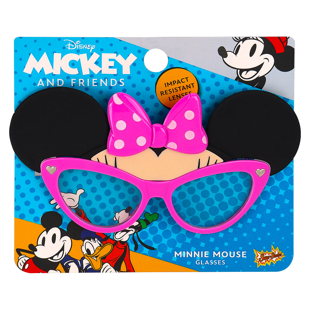 Give your little mouse the gift of magic and wonder with our Minnie Mouse Clear Lens Lil' Characters Sun-Staches. Featuring an adorable pink bow and Minnie Mouse ears, these stylish shades are the perfect accessory for your little Disney fan. With clear lenses these are perfect for picture perfect selfies.  These aren't just sunglasses, they're Sun-Staches!
