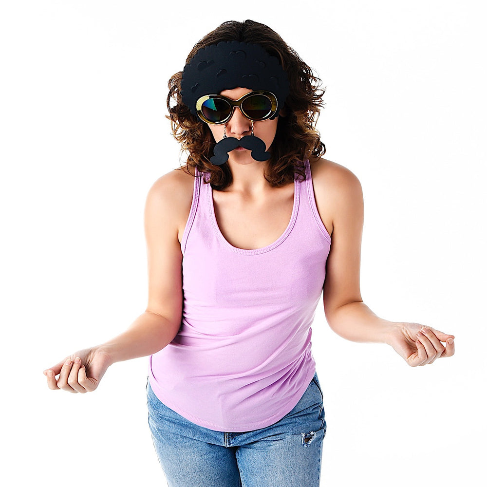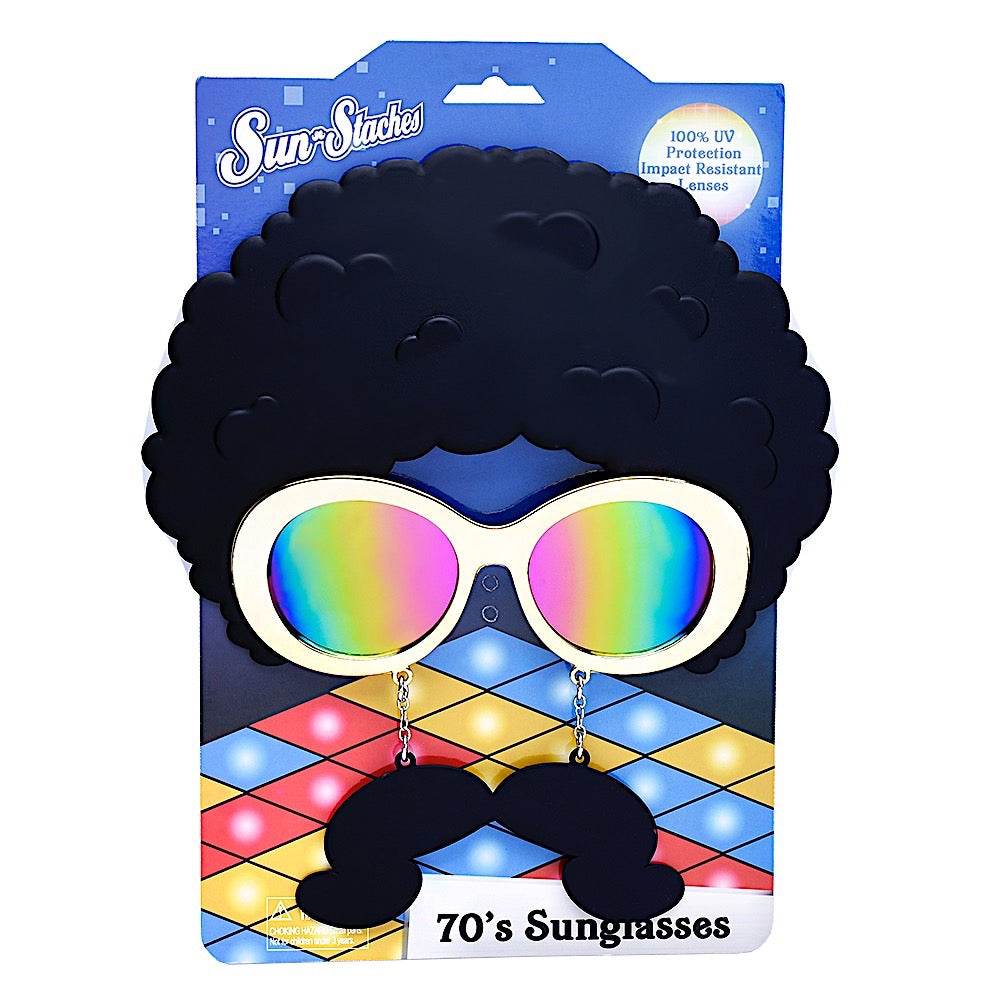 Bring disco back in these far out 70s Sunglasses. Feel the funk in these stylish spectacles, complete with a funky afro and matching mustache. Complete your 70s costume and look extra groovy on the dance floor. Whether you are at the disco club, a 70s party or just cruising in the Caddy, you're gonna look great this pair of Sun-Staches. 🕺🏽