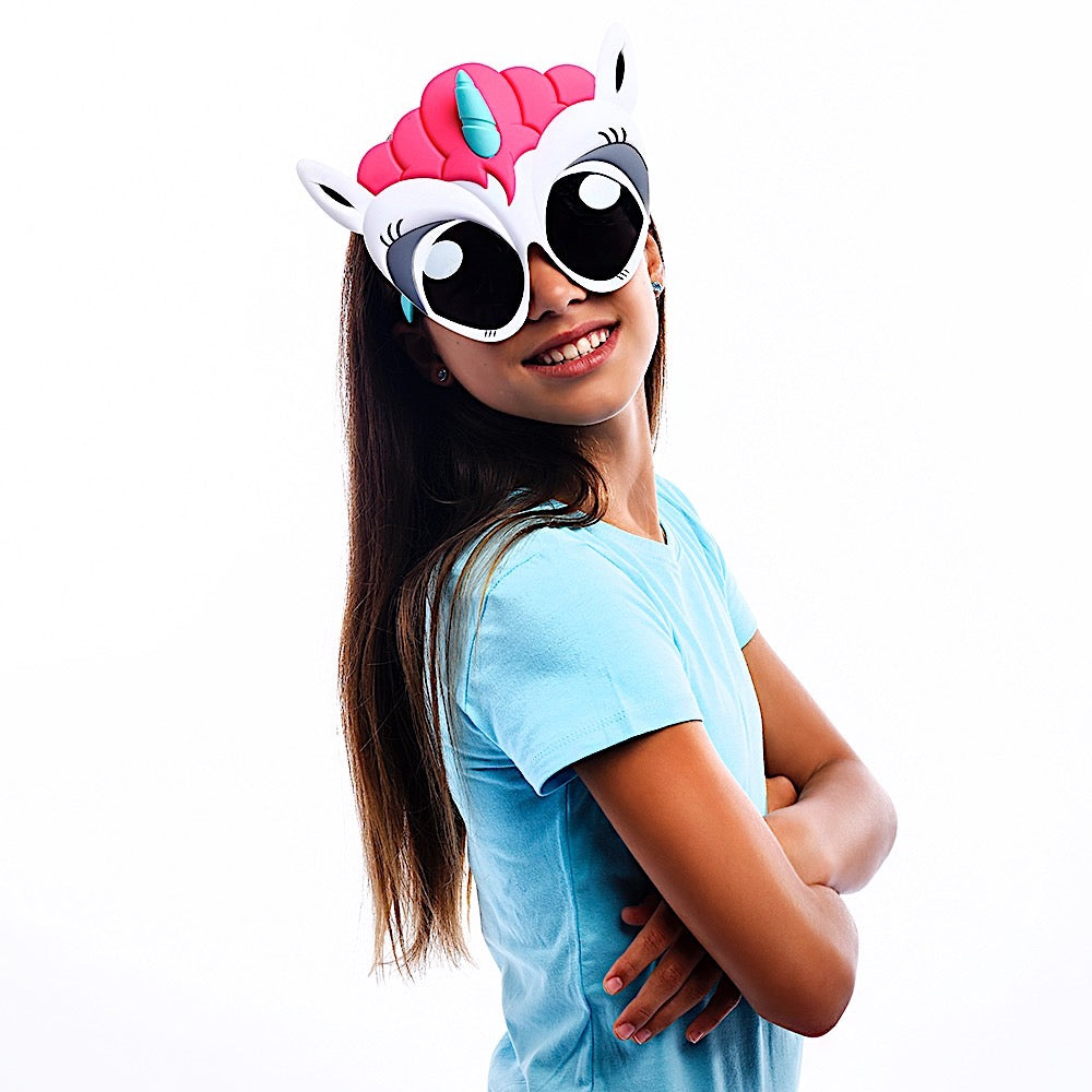 Get ready to sparkle and shine all day long in your Unicorn Sunglasses. Show off your bright pink mane and magical horn with these fun unicorn glasses. Make all your wishes come true and add a touch of magic to your unicorn costume or unicorn party. 🦄