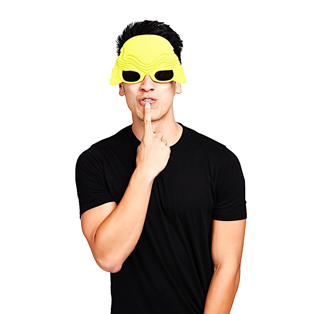 This amphibious creature is the missing link between aquatic life and mankind, and now it's ready to strike! Get ready to emerge from the Black Lagoon in style in The Creature Sun-Staches! Featuring the "Gill-Man" and his grotesque appearance these shades are sure to bring the spooks to the party. Great for pool parties! These aren't just sunglasses, they're Sun-Staches.