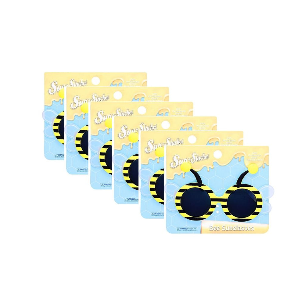 Become the buzz of the beehive with our Bee Lil' Characters Sun-Staches. Featuring a black and yellow frame and adorable bumblebee antennae, these stylish shades are fashionable and functional. Complete with UV400 protection, these are perfect for protecting your little one's eyes while having fun in the sun. These aren't just sunglasses, they're Sun-Staches!
