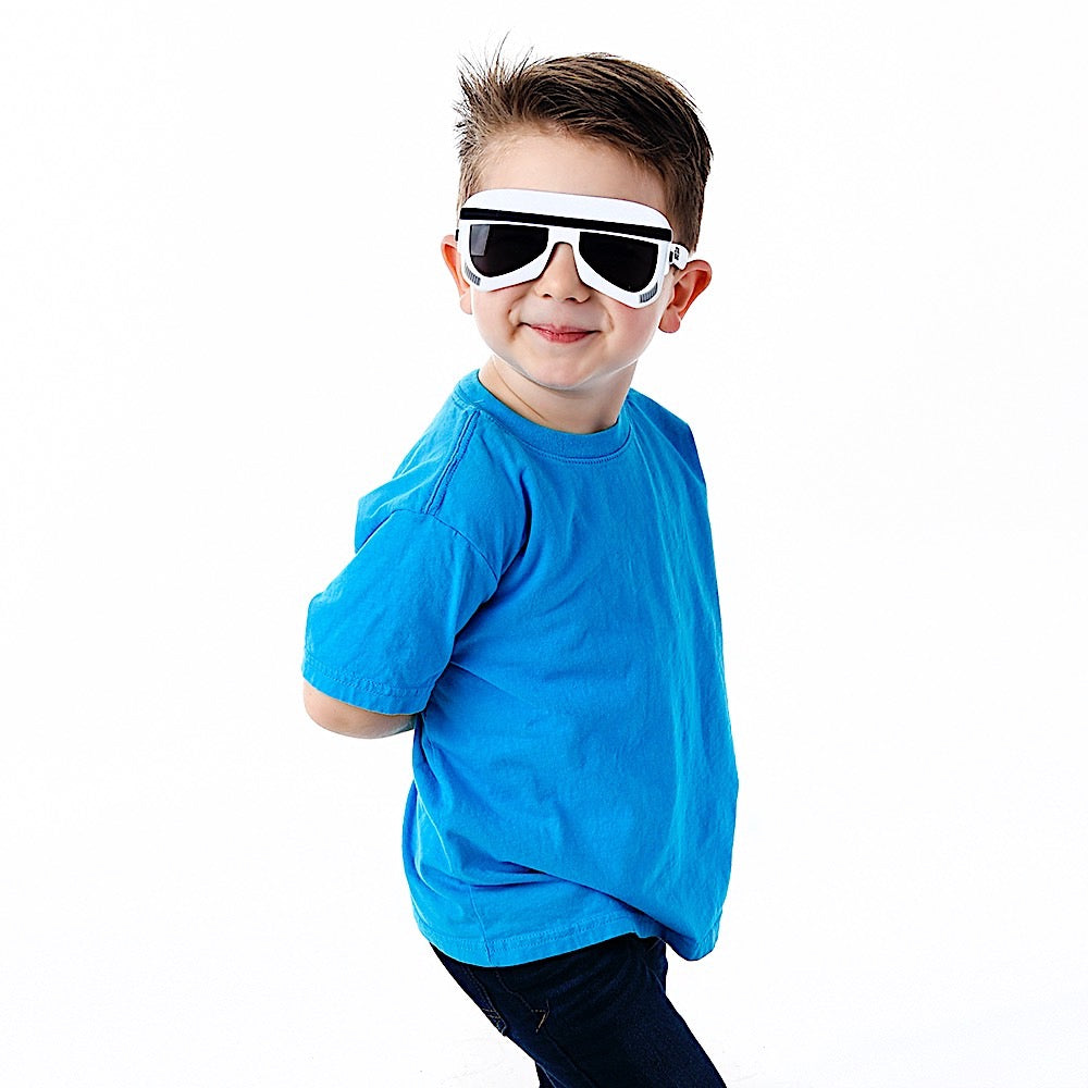 Protect the Empire with a pair of Storm Trooper Lil' Characters Sun-Staches. Featuring the iconic  white helmet and visor these stylish shades are out of this world. Turn any party from just stellar to interstellar with these Star Wars themed shades. Featuring 100% UV protection, these shades might not stop a laser blast, but most fun way to keep your eyes safe while having fun in the sun. These aren't just sunglasses, they're Sun-Staches!
