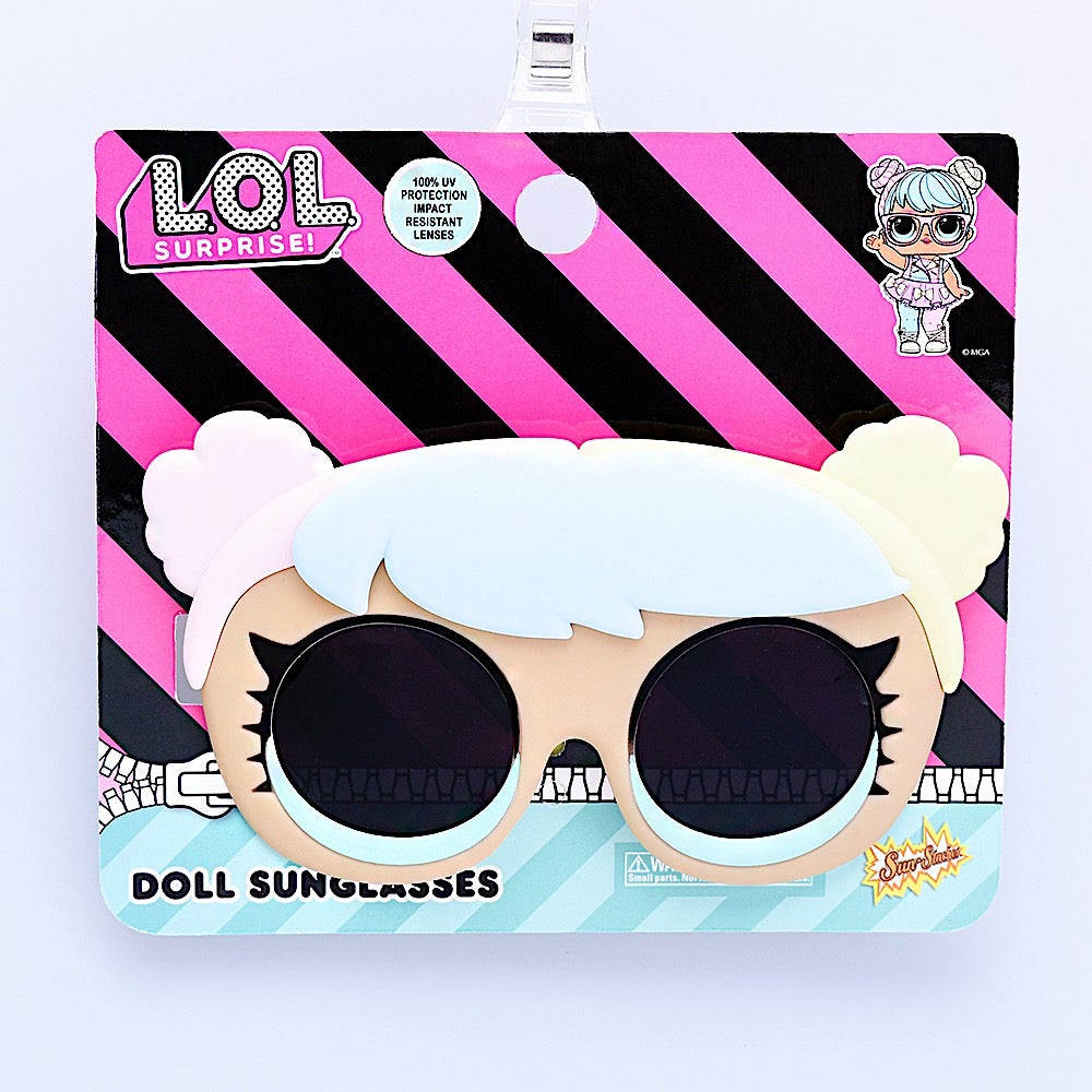 Show off your colorful style with a pair of LOL Surprise Bon Bon Lil' Characters Sun-Staches. Featuring her colorful pink, blue, and yellow pastel hairstyle and big blue eyes, these chic shades are great for young fashionistas and fun for all occasions. These aren't just sunglasses, they're Sun-Staches!