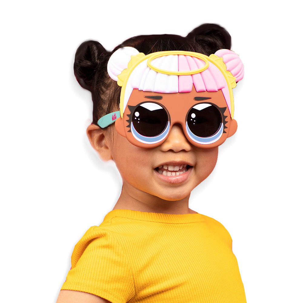 Show off your colorful style with a pair of LOL Surprise Surgar Sun-Staches. Featuring her colorful pink, blue, and yellow pastel hairstyle and big blue eyes, these chic shades are great for fashionistas and fun for all occasions. These aren't just sunglasses, they're Sun-Staches!