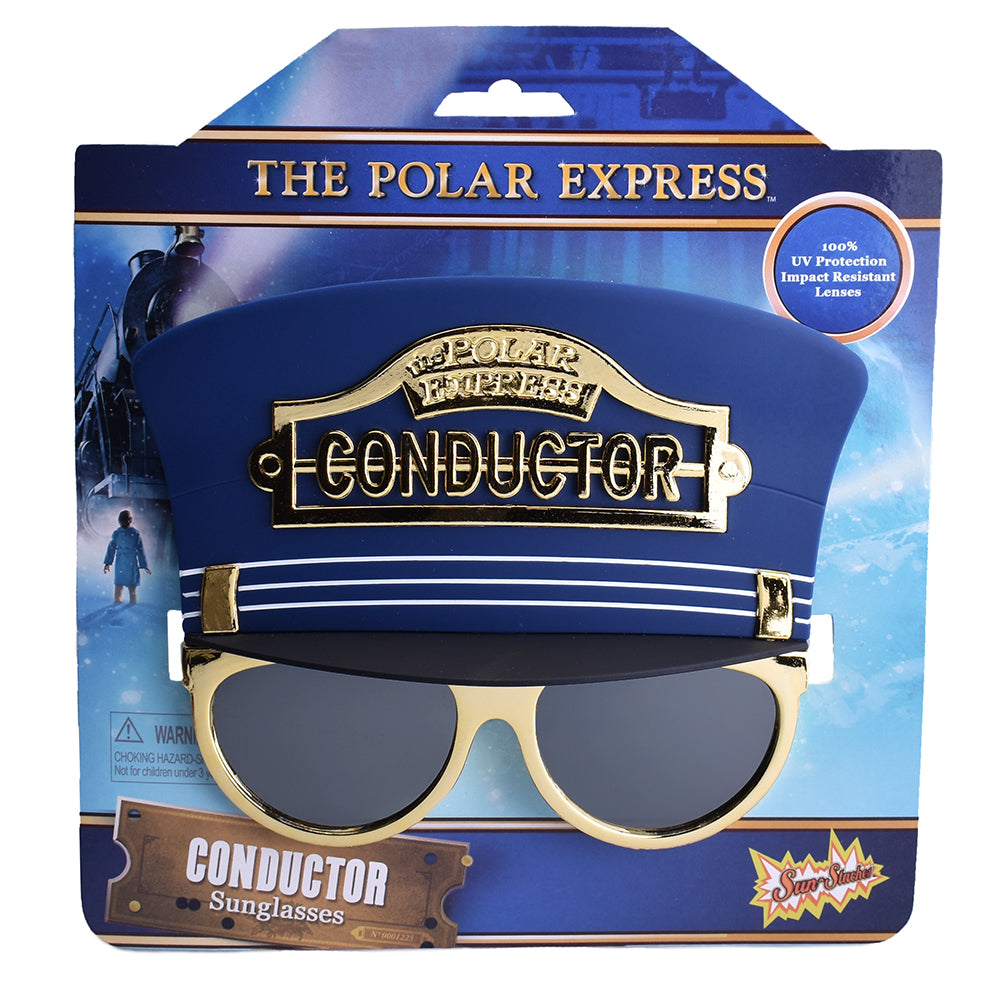 Grab your ticket and get ready to board with a pair of Polar Express Sun-Staches. Become the train conductor of the magical Polar Express and bring the holiday spirit to everyone around. Featuring the Conductor's cap and UV protective frames, these stylish shades were made for fun in the sun. Great for all ages and occasions. These aren't just sunglasses, they're Sun-Staches!